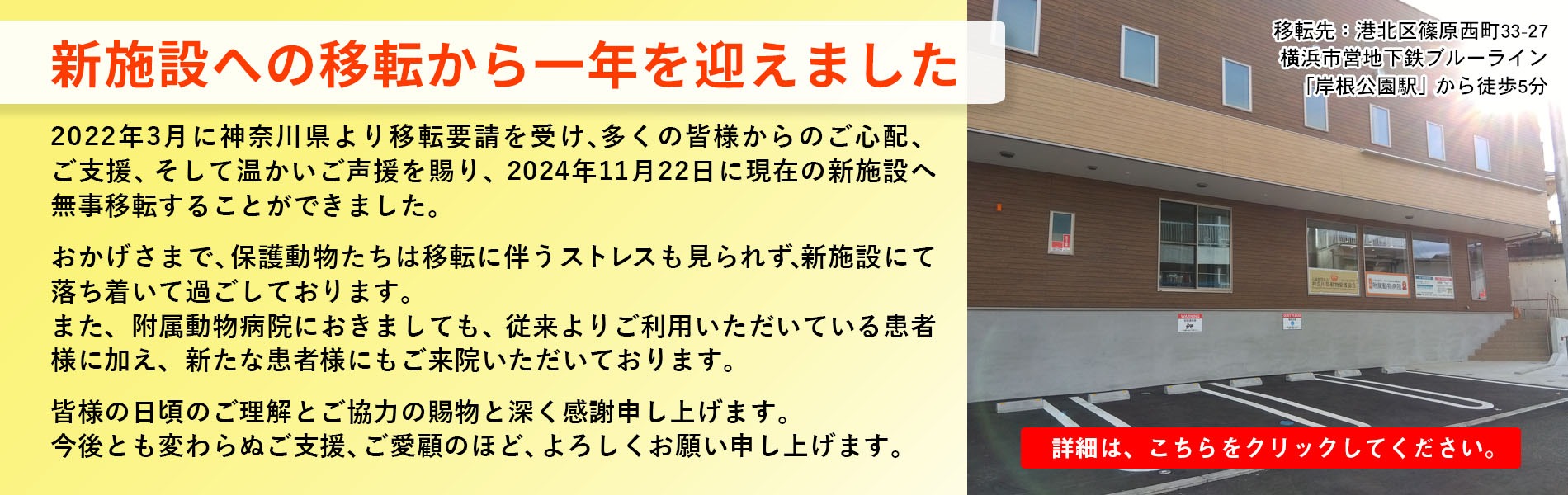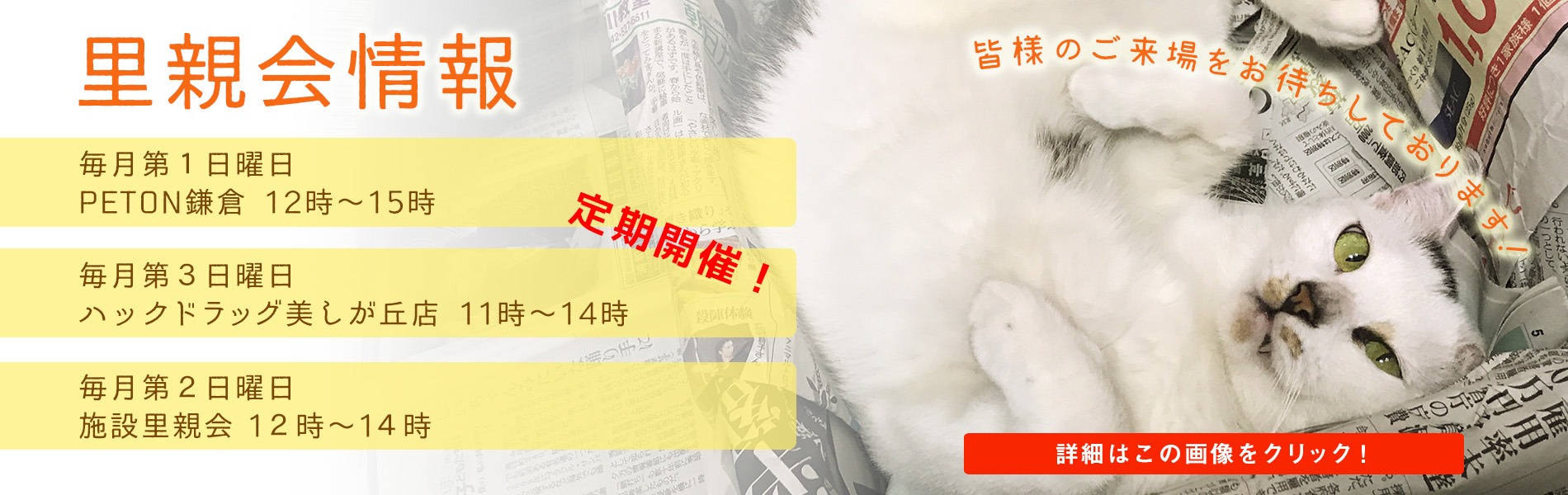 里親さん募集中 サポートしたい 動物病院はこちら 検定&セミナー グッズ販売 イベント情報 ノラ猫を増やさないために 協会ニュース 動物ニュース 動物問題 求人関係 リンク LINE公式 協会オリジナル絵文字&スタンプ 販売中♪ 絵文字 第1弾 絵文字 第2弾 ともだちバージョン ねこバージョン What's New 2026年1月28日 NEW! 施設里親会の日程が変更されました。 2026年1月2日 新年のご挨拶 2025年12月26日 物資のご提供について(しばらくの間一部ストップさせていただきます) 2025年12月4日 MILWAUKEE’CLUB×神奈川県動物愛護協会チャリティボトル 2025年11月21日 年末年始休診日のお知らせ 2025年10月31日 2025年11月20日は獣医師一名の診察になります ▶すべてを見る