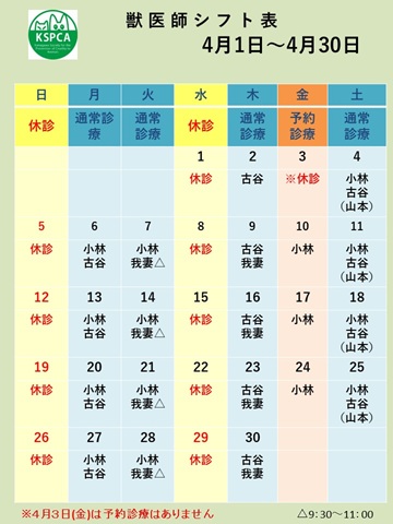 獣医師シフト表