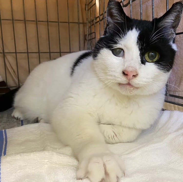 2024年1月14日 / 最終更新日時 : 2026年1月21日 kspca CAT / 猫 ぽちゃっこ 性別:オス(去勢済み)年齢:2013年頃生まれ(推定) 色柄:白黒のんびりとした性格の男の子で、遊ぶのも大好きです。撫でると嬉しそうに擦り寄ってきてくれます。(もっと撫でて欲しい時には催促もします。)健康で愛嬌のある可愛い子です。 保護経緯 飼い主が亡くなり、お世話をしていた方も飼うことが難しい為保護。 予防接種 混合ワクチン:済 健康状態 FIV:陰性 FeLV:陰性甲状腺機能亢進症(内服でコントロール中) 里親になるには FacebookXBlueskyCopy